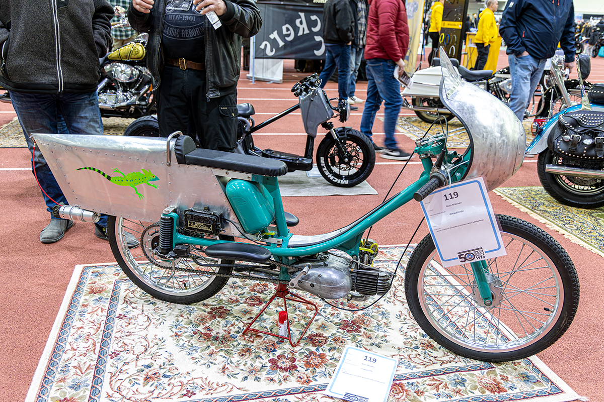 Näyttelyssä oli varttuneiden rakentajien upeita ja näyttäviä pyöriä. Jyväskylän näyttelyssä on ollut mukana suomalaisia huippurakentajia, jotka vuodesta toiseen tuovat erikoisosaamista vaativia näyttelypyöriä.